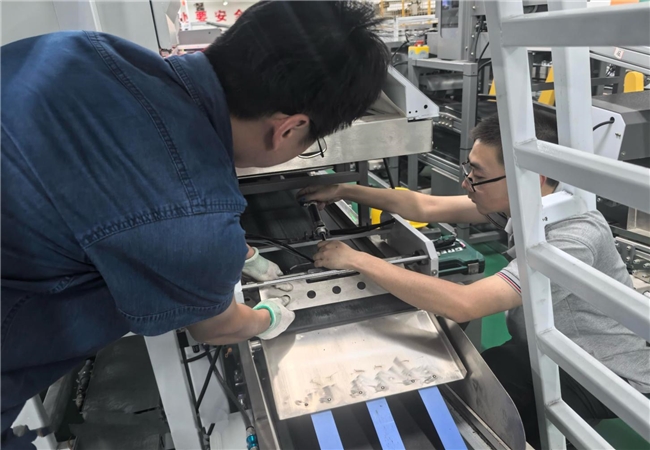 (图为湖北孝感烟草物流中心设备管理人员维修改造分拣设备)