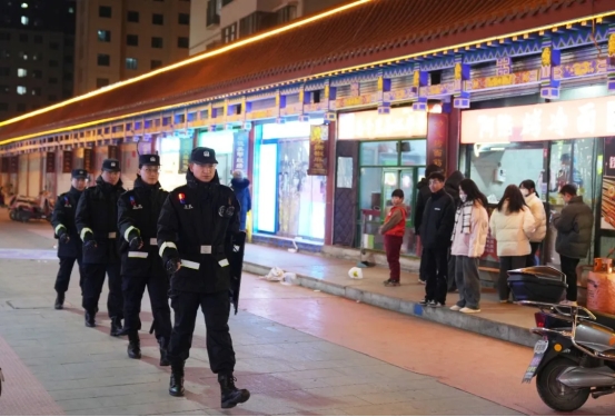 每晚,华灯初上,闪烁的警灯在寒风中格外醒目。特警大队民警辅警采用“步巡+车巡”相结合方式,在城区主要街道、重点部位及人员密集区域开展巡逻防控。