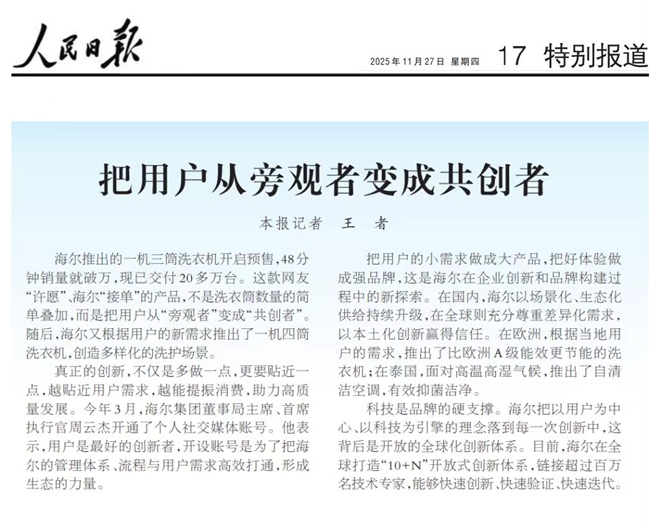 作为全新品类的三筒洗衣机正席卷家电市场,其中海尔智家年轻品牌统帅坚定实施爆款战略,成为用户首选:在京东平台,统帅懒人三筒洗衣机销量就达到20万台,全网累计销量破30万台,稳居洗衣机全品类TOP1。“把用户从旁观者变成共创者”,统帅也获得了《人民日报》点赞。