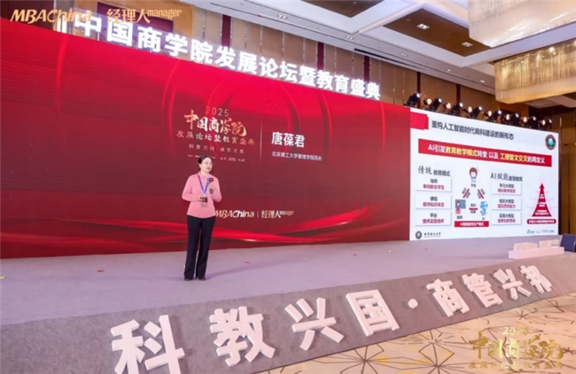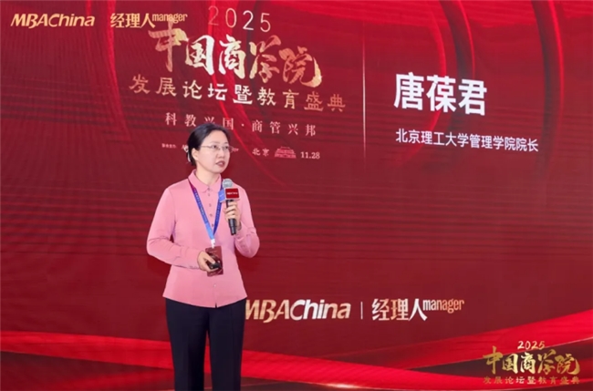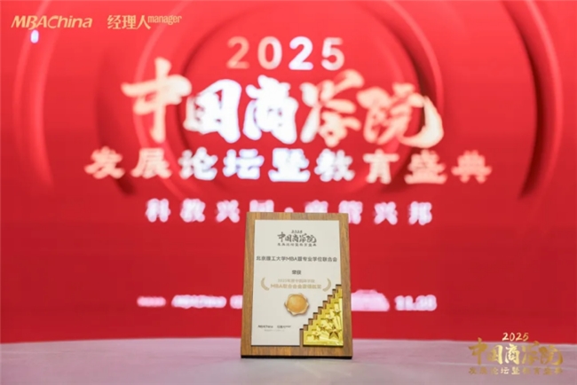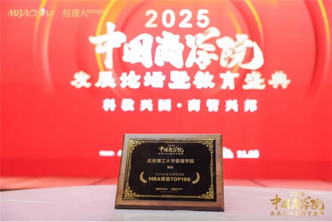 2025年11月28日,由MBAChina和《经理人》杂志联合主办的“2025年度中国商学院发展论坛暨教育盛典”在北京召开。本次盛典以“科教兴国、商管兴邦”为主题,来自全国百余所院校的三百余位院校领导、专家学者与行业代表参加会议,聚焦中国商科教育未来图景,碰撞前沿思想,分享最佳实践,凝聚发展共识,共探中国商科教育的革新方向。以管理创新助推现代化进程,以使命担当引领高质量发展。北京理工大学管理学院院长唐葆君、副院长陈翔、院长助理兼专业学位教育联合中心主任吴水龙、副主任齐英杰应邀参加此次论坛。
