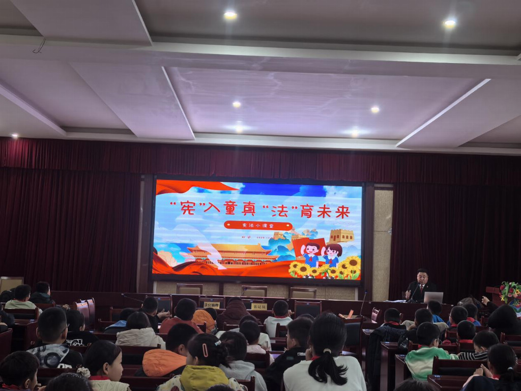 模拟法庭结束后,法治副校长以“‘宪’入童真‘法’育未来”为主题,带来了一堂精彩的宪法微课堂。
