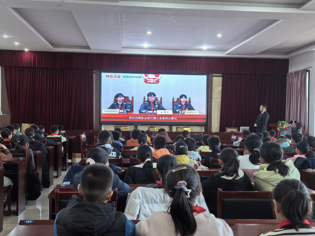 “现在开庭!”随着“小法官”敲响法槌,模拟法庭正式拉开帷幕。