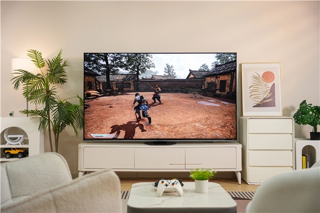 不止影视作品,多款优秀国产3A游戏也擅长“用色彩讲故事”。海信RGB-Mini LED电视通过搭载独家定制的黑曜屏Ultra,实现了“极黑极透”的深邃视效,配合信芯AI画质芯片H7的智能调控,暗场黑位精准、细节拉满媲美OLED,搭配4K 170Hz原生高刷,无论是高速运动赛事的流畅跟拍,还是3A游戏的毫秒级响应,都能做到丝滑无拖影、动态无模糊。值得一提的是,海信全新推出的RGB-Mini LED电视“影游机皇”E8S Pro,为影游发烧友带来SUPER电影模式、双杜比解码、语音启动游戏机、行业最强游戏妙控台等12项极致影游功能,既极致还原自然真实色彩,还能将看大片、玩游戏的氛围瞬间拉到顶点。现场,夏振东老师表示想买100吋大屏电视时,海信E8S Pro也是第一时间成为推荐的首选机型。