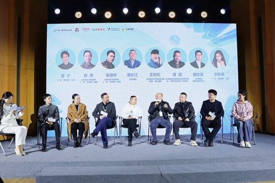 嘉宾对话环节,《“发”家致富》导演崔建宇,编剧徐倩,演员盛少、刘宸希结合创作实践和与会嘉宾就“微短剧精品创作”这一主题展开了深入交流。