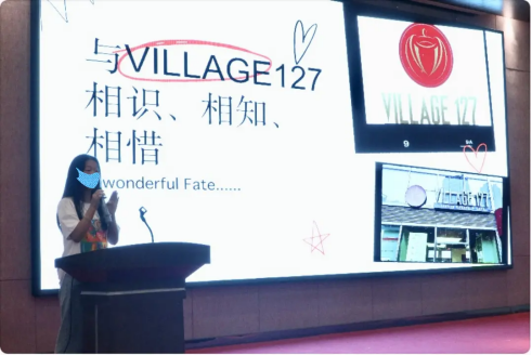 参加公益活动的小雪在舞台上做分享
