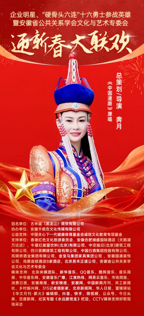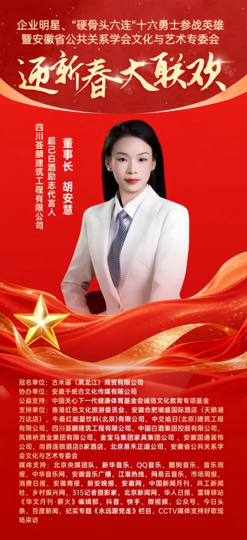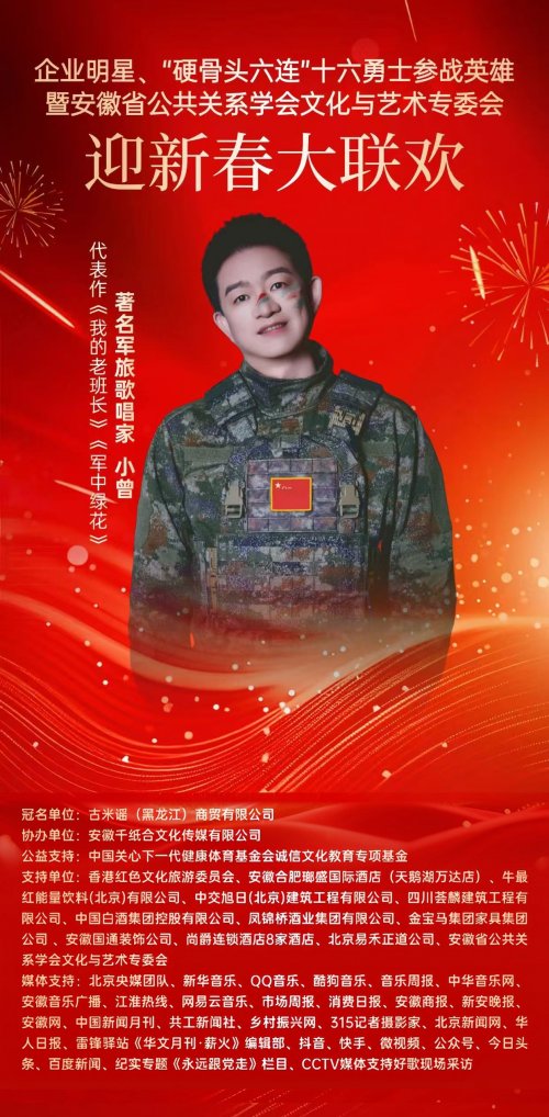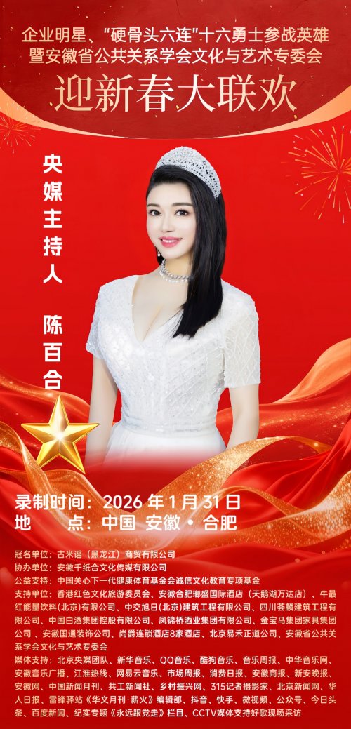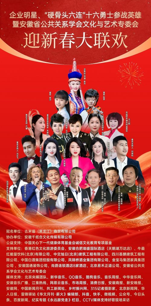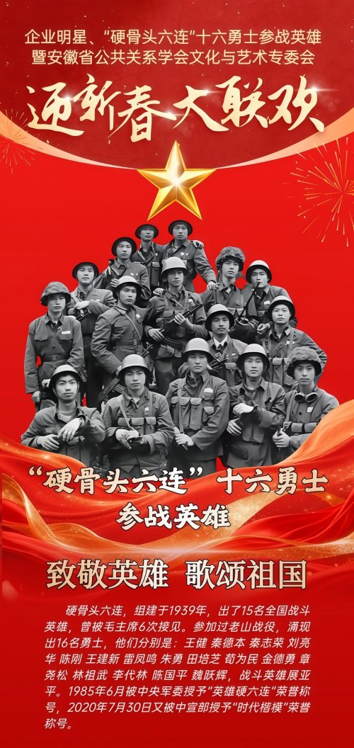 2026丙午马年新春将至,暖意渐浓。近日,备受关注的《企业明星•“硬骨头六连”十六勇士参战英雄•安徽省公共关系学会文化艺术专委会•迎新春大联欢》活动进入筹备倒计时,将在2026年1月31日于中国安徽合肥举行。